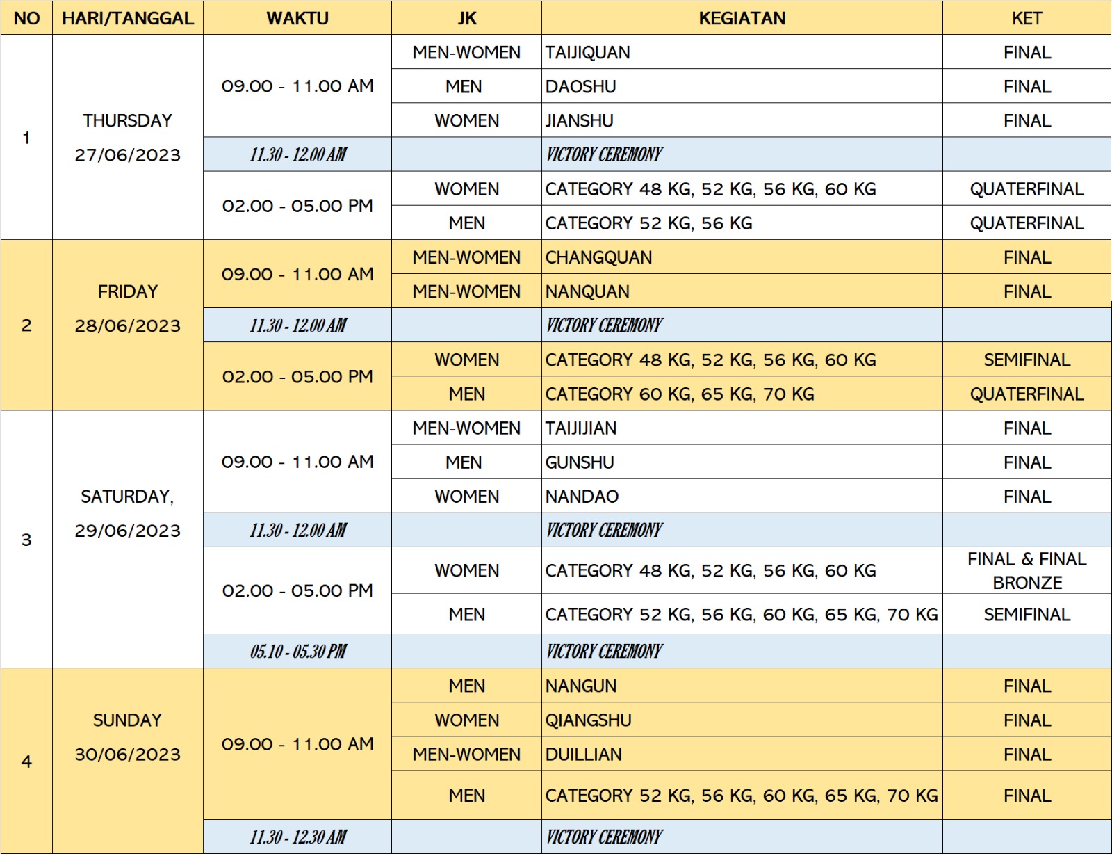 WU BU QUAN GROUP D - Field 9 ( 19 athletes) |